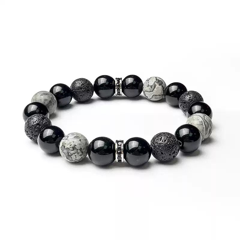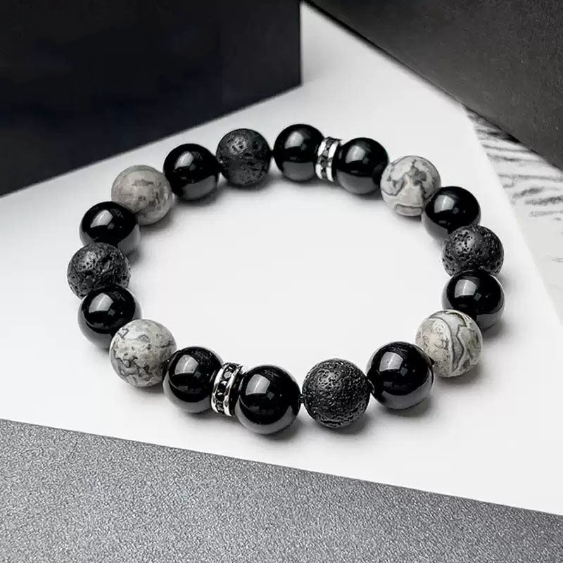 Il bracciale energetico Obsidian Drift Volcanic Stone è uno splendido gioiello che combina il potere naturale di tre pietre uniche: ossidiana, roccia vulcanica e pietra mappa. Realizzato con precisione, questo bracciale presenta perle lisce e levigate di ossidiana, nota per le sue proprietà radicanti e protettive, roccia vulcanica, celebrata per la sua capacità di aumentare forza e resilienza, e pietra mappa, che si ritiene aiuti ad affrontare le sfide della vita. Insieme, queste pietre creano un'armoniosa miscela di energia.